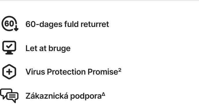 2 Der er visse begrænsninger. Du skal have et abonnement på Sikkerhed til digitale enheder med antivirus, der fornys automatisk, for at få adgang til virusfjernelsestjenesten. Læs mere på Norton.com/virus-protection-promise.